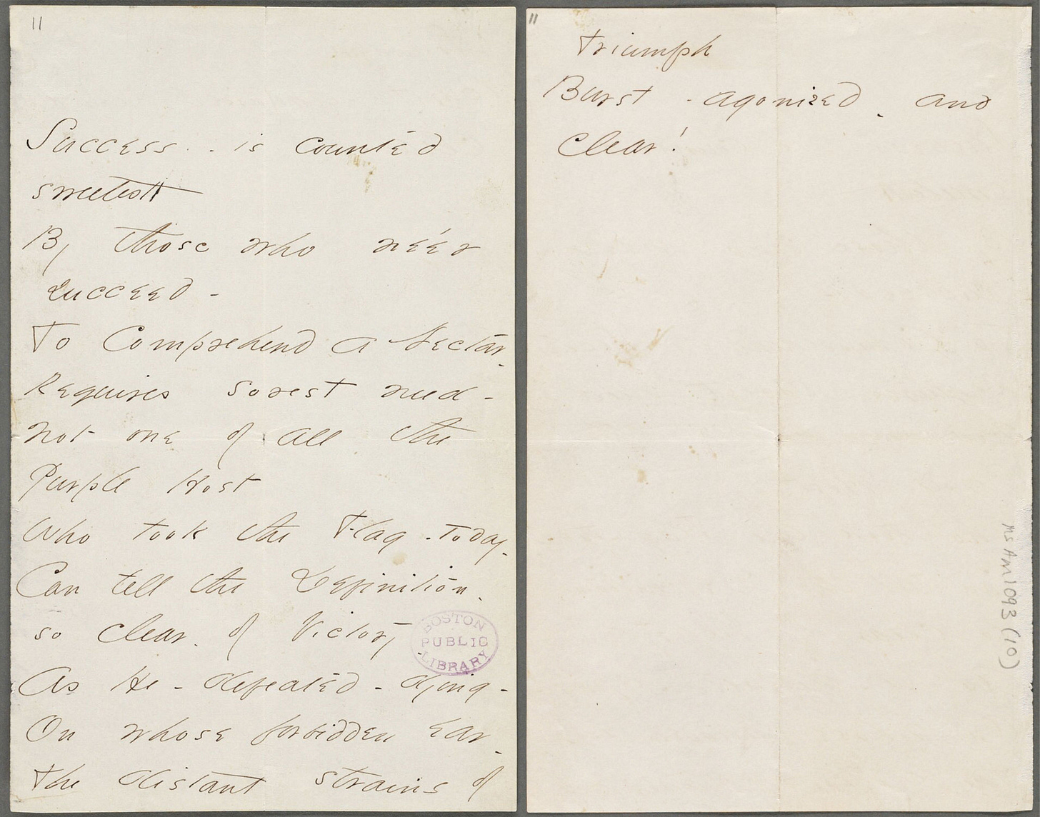 In any case, “Success is counted sweetest” is a great poem, easy to memorize, which I have. The four-line stanzas are memorable and vivid. The rhyming in the second and fourth lines of each stanza is musically pleasing!